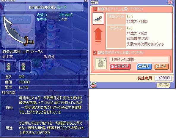 たまにinしても合成品集めるとかだけで、課金してるのにあんまりやってないっていうね、投資ゲームになってます。